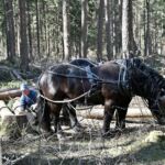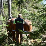 Kindergarten Amalch bei den Holzarbeiten mit den Pferden im Amlacher Waldele April 2021